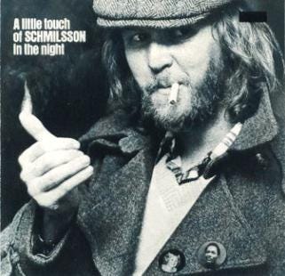 “Nevertheless” was recorded by Johnnie Ray. For more on what Johnnie means to Bobby, see this entry from Shadow Chasing by the always brilliant Graley Herren. Harry Nilsson also recorded “Nevertheless” for his album of standards, A Little Touch of Schmilsson in the Night. The album cover of which references a famous gag from comedic genius Stan Laurel. Inside many a comedian is a frustrated musician (e.g. Sandler, Fallon etc.), and many musicians imbue their art with comedy.